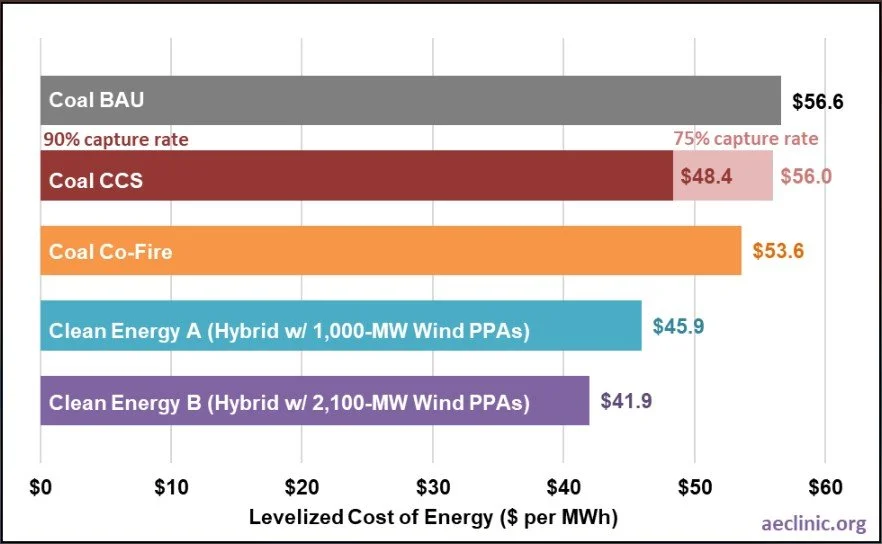 On behalf of the Southern Environmental Law Center, Researchers Chirag T. Lala and Joshua R. Castigliego, Senior Economist Tyler Comings, and Assistant Researcher Elisabeth Seliga prepared a report that models the costs to consumers of alternatives for the soon-to-be retired Kingston Fossil Plant—a coal-fired power plant in Harriman, Tennessee that is owned and operated by the Tennessee Valley Authority (TVA). TVA’s Alternative A plan replaces Kingston with a gas-heavy portfolio that constructs gas combined cycle (CC) and combustion turbine (CT) plants, while Alternative B focuses on replacing Kingston with a clean energy portfolio that relies on solar and battery storage resources.